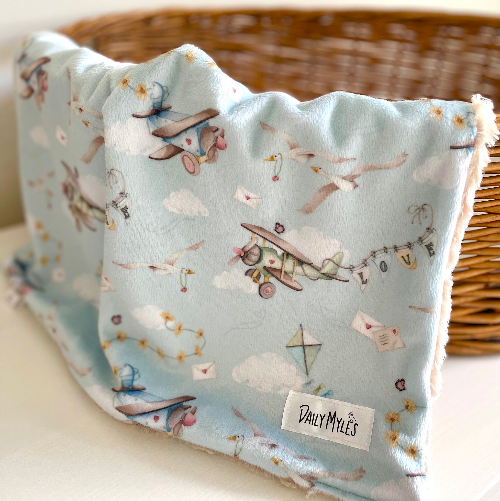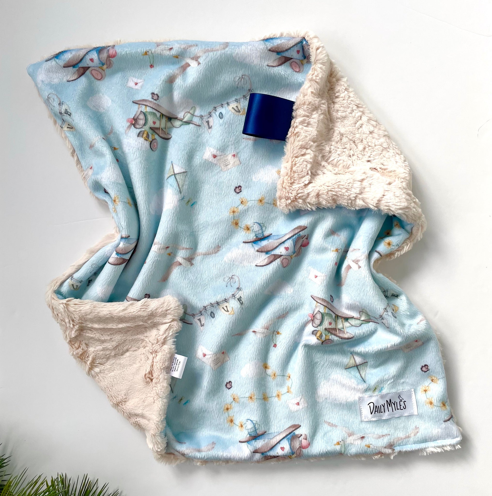 **Pictured is the Airplane Lovey with the Beige Backing and Navy Ribbon**