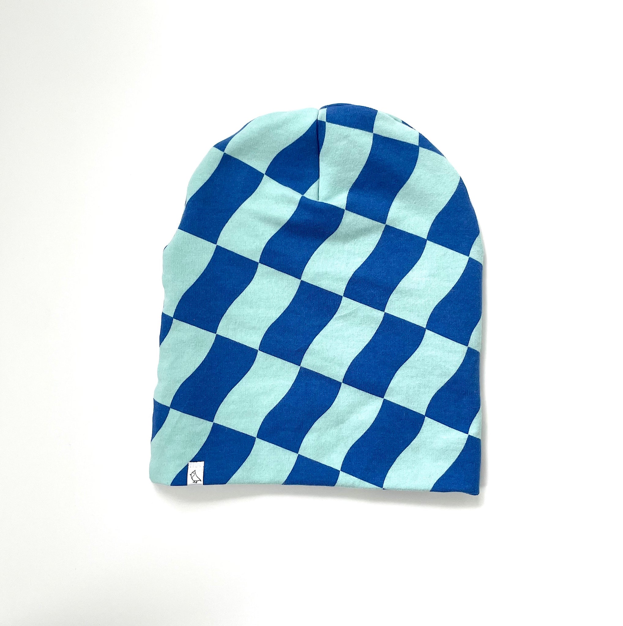 The Blue Wavy Check Fleece Slouchy Beanie is a winter weight hat, made from a cotton spandex fleece knit. It is Oeko Tex certified, meaning it is free from restricted chemicals, making it the perfect accessory for you or your little, or both! The cold weather doesn't stand a chance with this cozy hat.