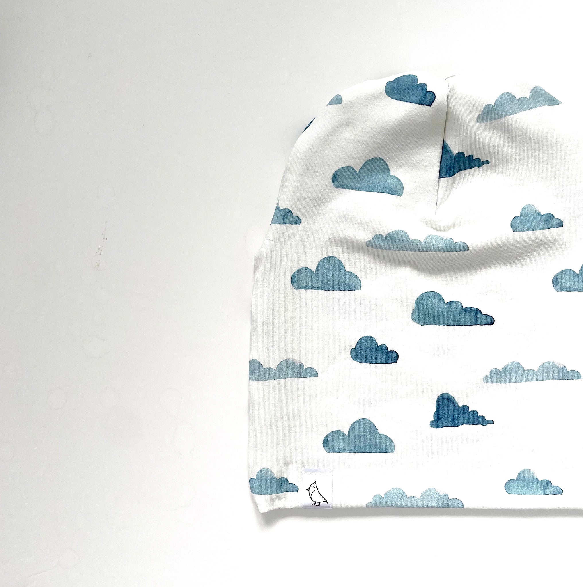 The Clouds Beanie is made from the softest, lightweight and stretchy cotton spandex knit. This fabric is organic and Oeko Tex 100 approved. All DM beanies are made with hidden side seams and reversible labels so that the can be worn slouchy or cuffed!