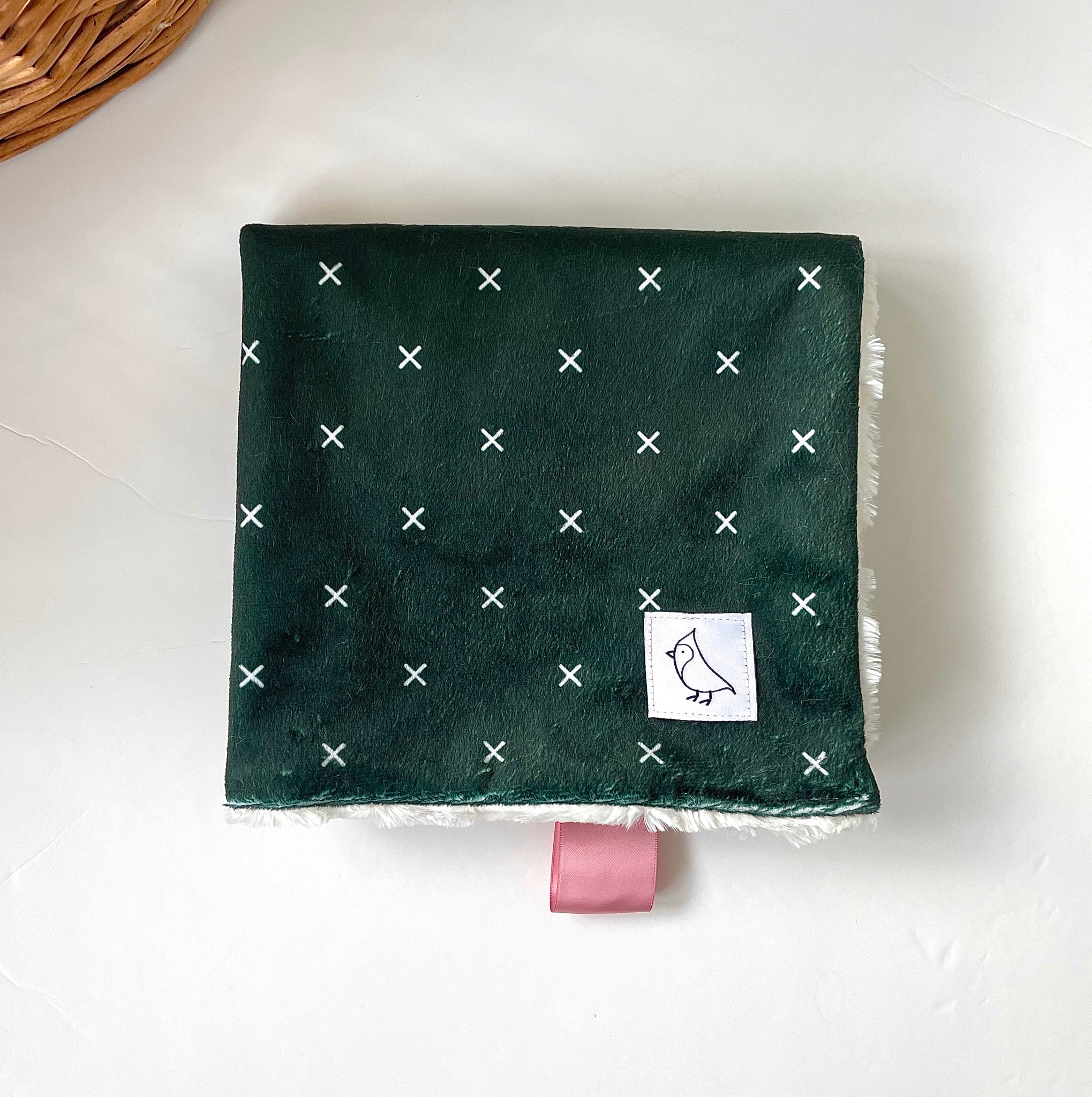 Made with an ultra soft, sustainably printed minky front and a faux fur minky backing they now feature a silky soft satin ribbon in the upper right corner making them not only a great comfort piece but also a great sensory item for baby and toddler.