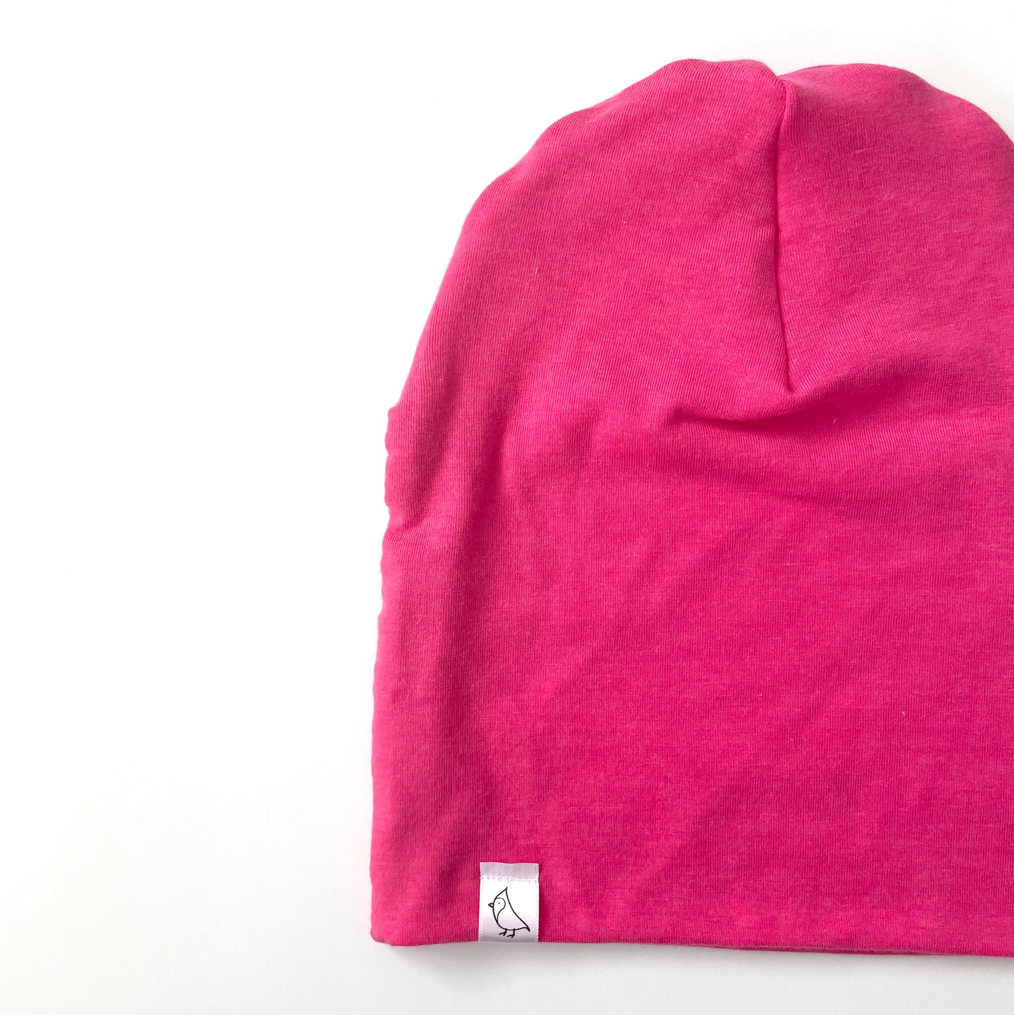 The Flamingo Pink Slouchy Beanie is made from a bamboo knit! Bamboo is not only one of the softest fabrics but it is also a sustainable material with insulating properties that keeps you cooler in the summer and warmer in the winter. All DailyMyles beanies have hidden side seams and a reversible label so they can be worn with a cuff or without. They are the perfect accessory for covering bad hair days year round.