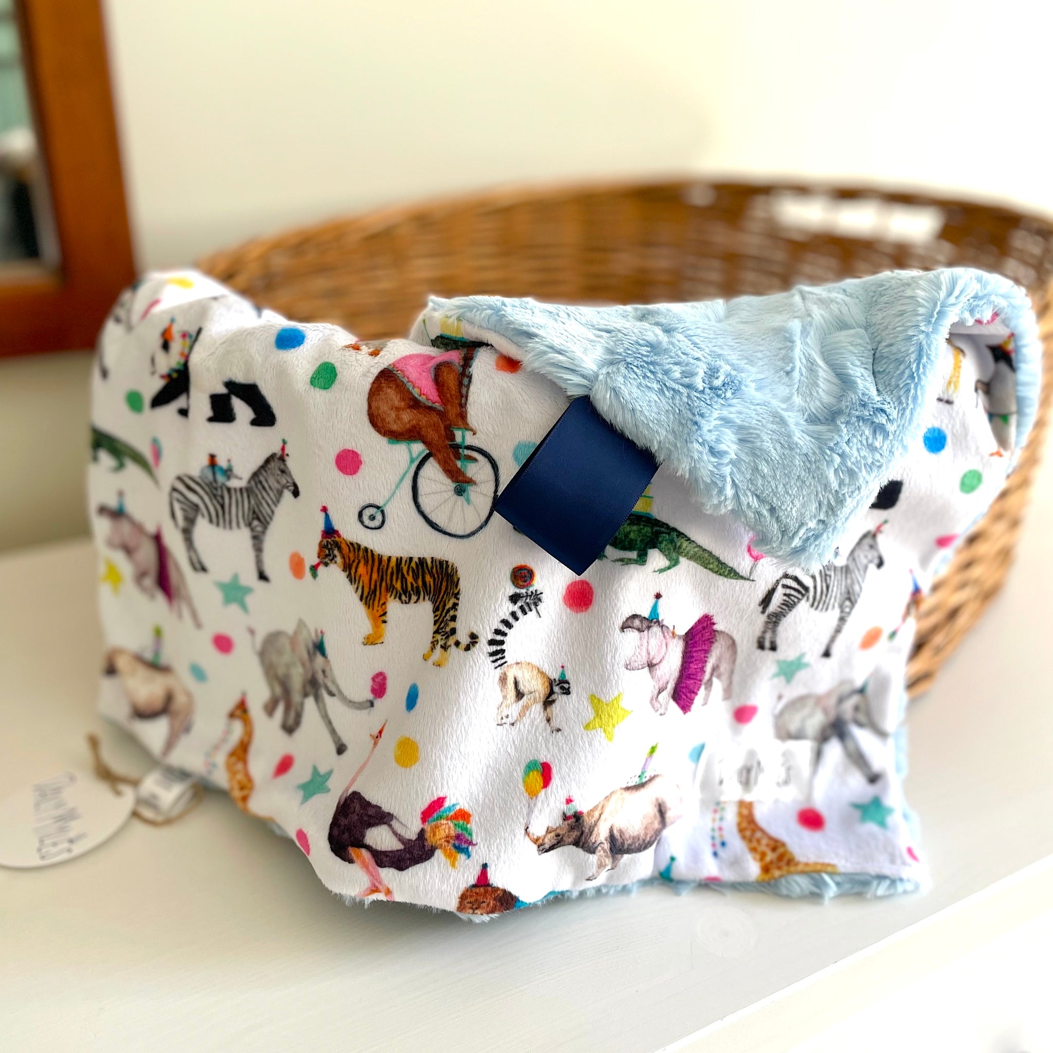 Made with an ultra soft, sustainably printed minky front and a faux fur minky backing they now feature a silky soft satin ribbon in the upper right corner making them not only a great comfort piece but also a great sensory item for baby and toddler.