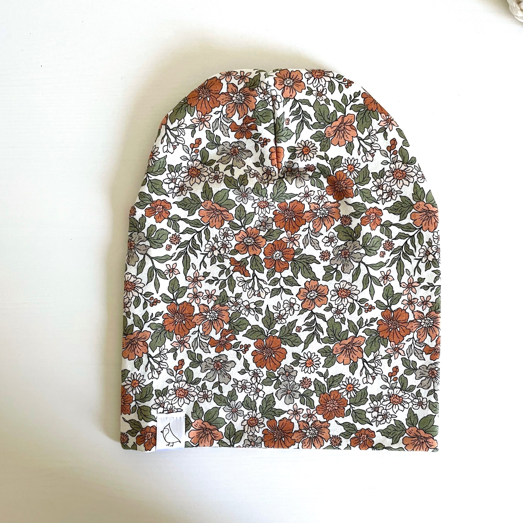 The Rust Floral Slouchy Beanie is made from an ultra soft, lightweight and stretchy cotton spandex knit. It is Oeko Tex certified meaning it is free from restricted chemicals, making it the perfect accessory for you or your little, or both!